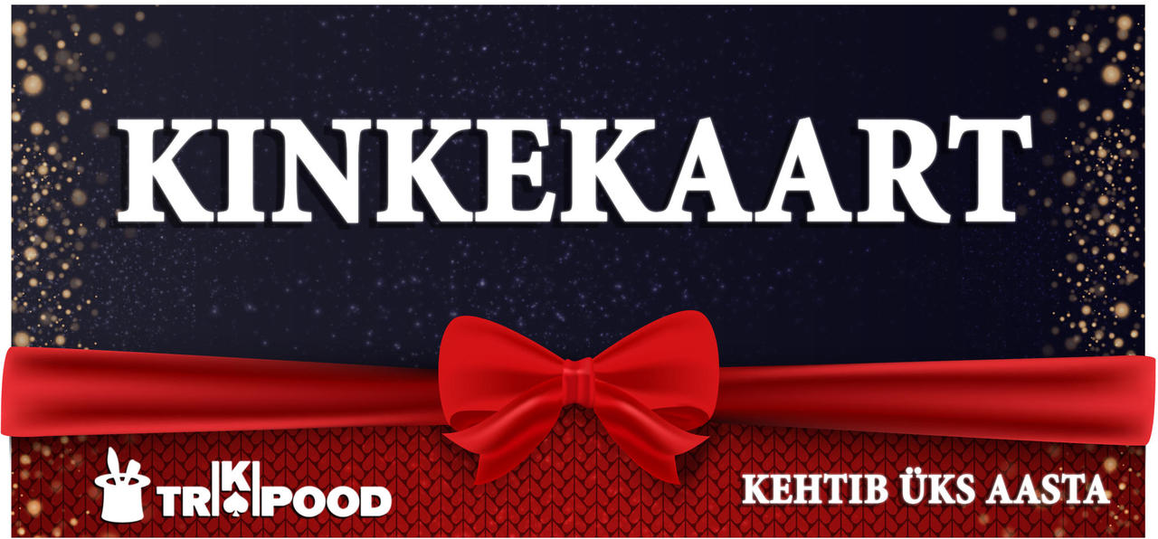 Kinkekaardi väärtuses on omanikul võimalik valida Trikipoe trikitoodete, kui ka Mustkunstiteatri etenduse piletite vahel.
