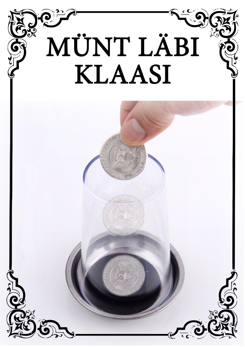 Kaasa tuleb spetsiaalne metallist klaasialus, mis teeb kogu triki ise ära. Meelepärase mündi ja klaasi saad trikiks ise valida.