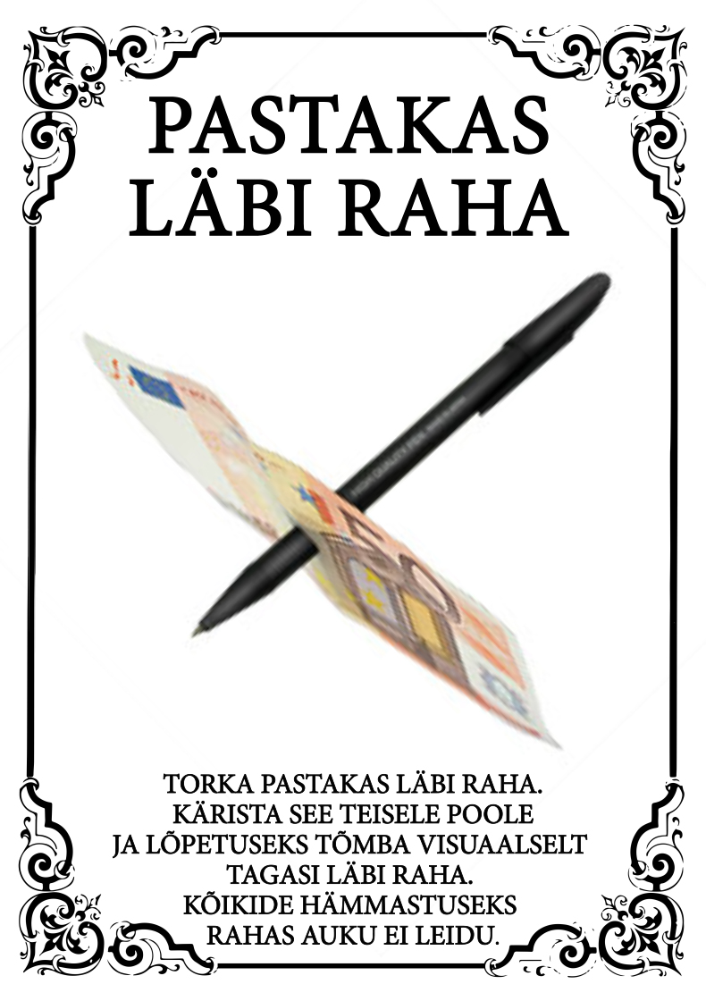 Rekvisiite - nii pastakat, kui rahatähte võib publik eelnevalt ja ka pärast trikki